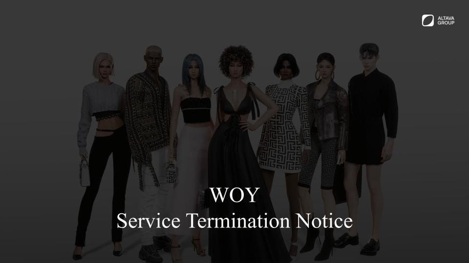 Dear Users, We are announcing that the service for ALTAVA Worlds Of You will be discontinued on April 30, 2026.
