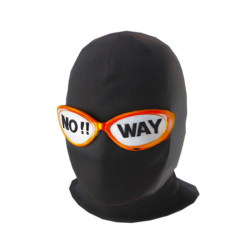 A black balaclava with the inscription "No way" embroidered on the front, glasses with gray frames and orange eyepieces